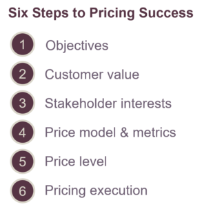 This post barely scratches the surface of the six steps as a book could easily be written on this process, however, the basic structure provides a starting point for thinking about pricing new products or price improvement programs.